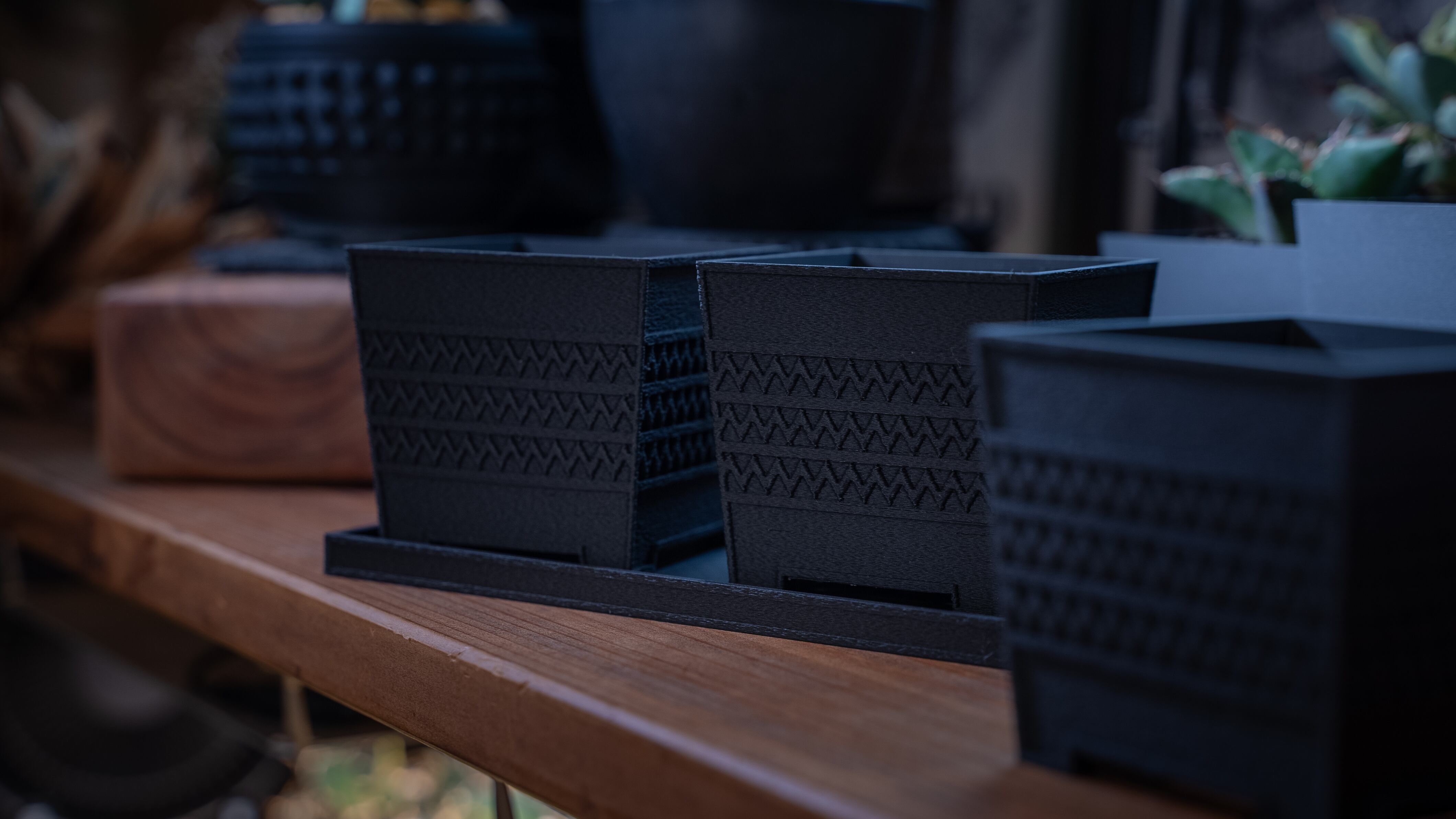 ロゴとの相性を良くするために、トレーの縁を放射線状に。